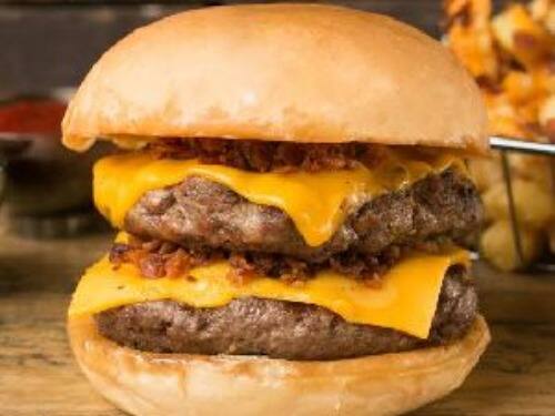 Pão selado na manteiga, maionese verde, 2xcarne de hambúguer 100g, 2xqueijo cheddar, + Bacon, + batata frita Hambúguer saboroso e suculento feito com carne de costela com ingredientes de primeira.